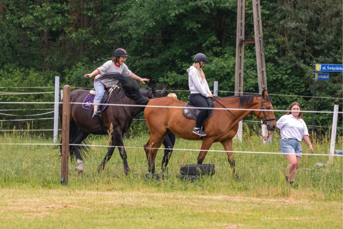 Podział na dwie grupy: jazda konna dla chętnych lub gry i zabawy terenowe